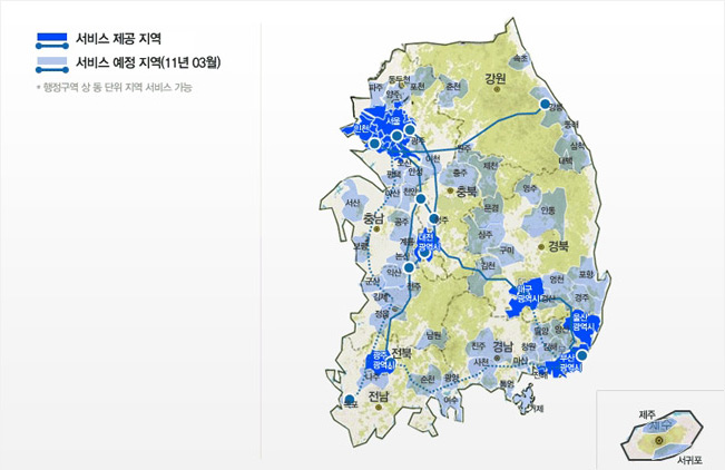 이 밖에 와이브로는 KTX 고속열차는 물론이고, 서울/수도권 지하철, 택시 등의 대중교통 시설에서도 사용할 수 있어 활용도가 점차 높아지고 있다. 지역별 와이브로 사용 가능 여부는 KT 및 SKT 홈페이지에서 확인할 수 있다.